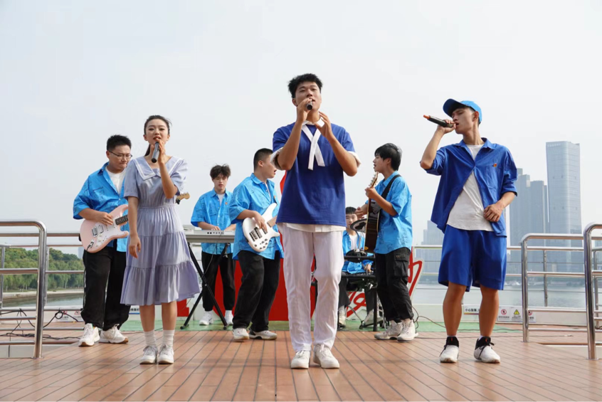 鼎盛娱乐城 学生许文豪、郭懿莎等同学人在鼎盛娱乐 党委余光辉书记等领导以及艺术实践中心李湘老师的指导下,暑假期间完成了湖南教育电视台《开学第一课》节目的录制,演唱了以万步炎教授先进事迹为原型创作的片尾曲《追光•远航》,这对于鼎盛娱乐城 学生来说是一次非常好的艺术实践活动机会,本次活动最终取得了圆满成功,社会反响很强烈,得到了社会各界的一致好评!
