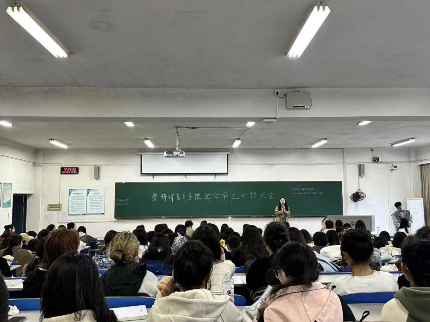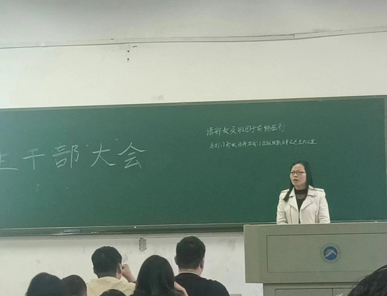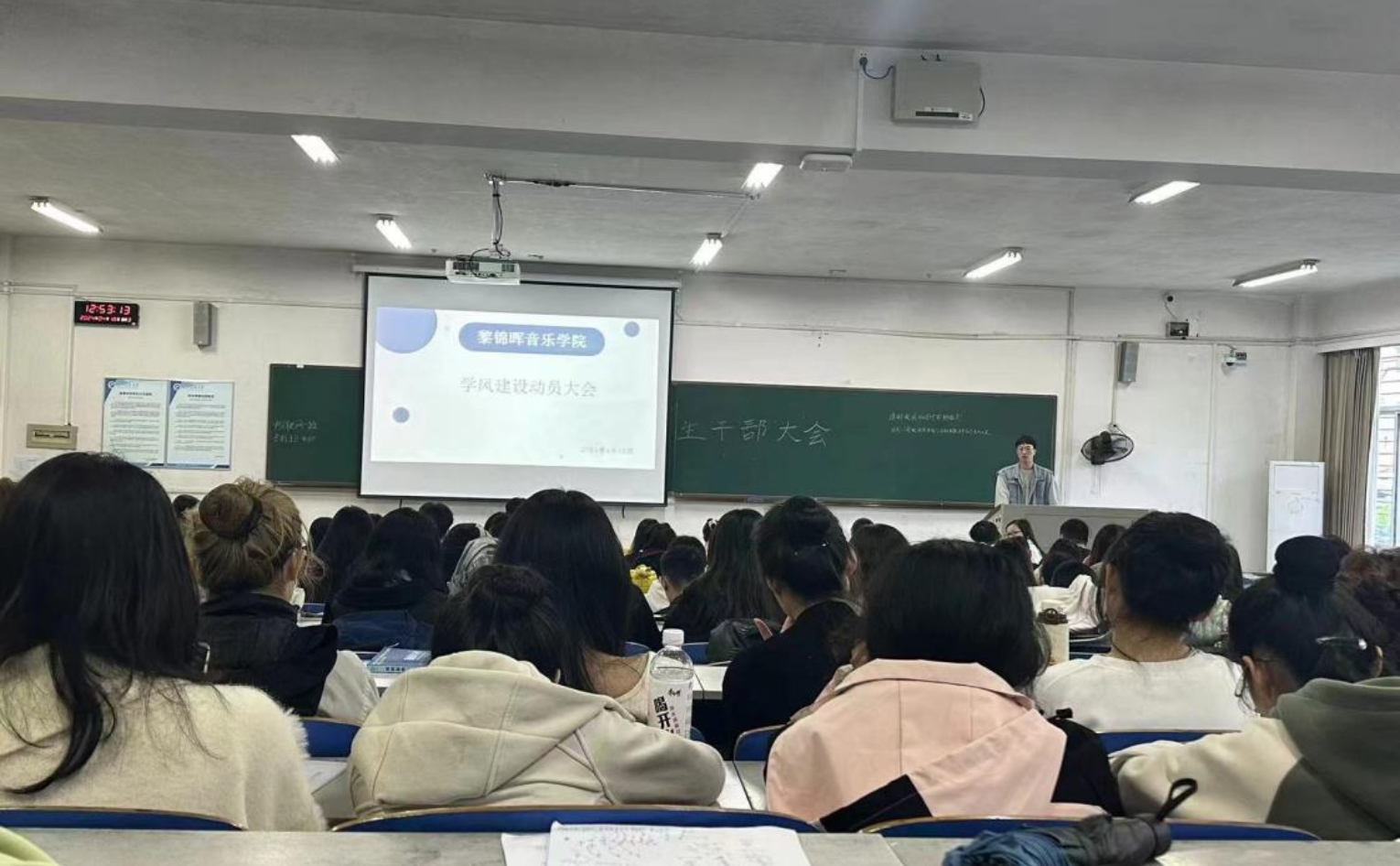瞿亚老师就日常管理与学风建设月作工作安排:一是继续严查到课、晚归、卫生等情况,引导同学们养成良好的行为习惯;二是要求各班级组织召开“奋斗的青春”主题班会,提升班级学习氛围。三是学生干部作为师生沟通的桥梁,应做好上传下达,促进师生间的理解和合作,并做到:处处自警,坚定思想,切勿在网络上发表不当言论;时时自思,动脑思考,主动作为,提高责任意识。