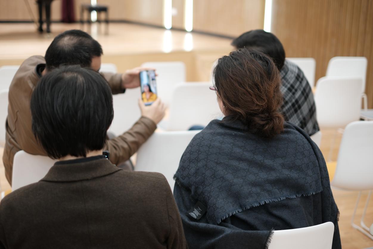 指尖跳跃,悦动琴音。钢琴组的老师们根据自己准备的曲目,进行弹奏,优美的旋律从指间倾泻而出,动听的歌声在梁间萦绕,教师们尽情的展示着自己的专业风采。湖南科技大学湘江学者计划特聘教授,硕士生导师,美国钢琴演奏博士吴易颖认为,钢琴组教师的表现令其惊讶和震撼,很欣慰看到钢琴青年教师在弹奏时展示弹奏技巧的同时,也具有一定的音乐表现力和感染力。吴易颖博士建议老师们继续加强学习,透过内心读懂作曲家的意图,更好地将个人的音乐特性展现出来。