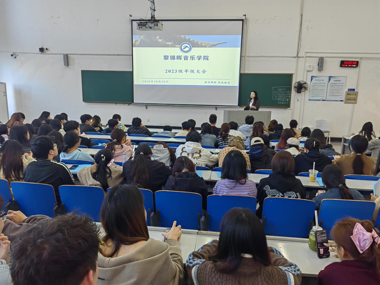 10月14日和10月31日,辅导员瞿亚分别组织召开2025级与2024级年级大会。瞿亚要求大一学生及早树立学习目标,做好大学学业规划,涵养高尚品德,努力提升专业技能,遵守校级校规,积极参加课内外活动,注重人际交往技巧,努力提升综合素质。对大二学生着重强调学风建设的重要性,从到课率、英语过级率、补考率、日常管理、安全教育、文明上网等方面提出了具体要求,要求同学们珍惜大学时光,养成良好学习生活习惯,充实大学生活。